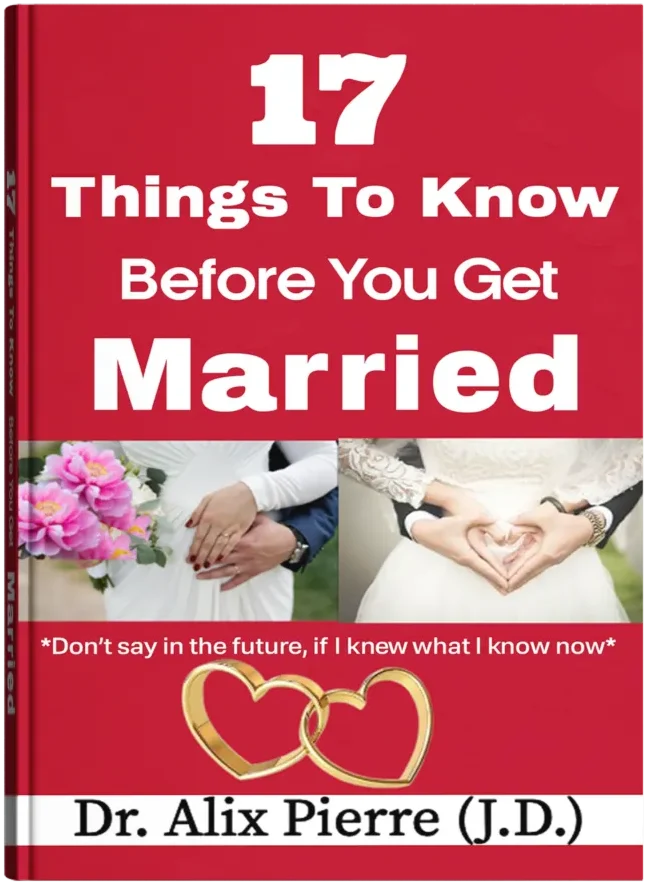 17 Things to Know Before You Get Married by Dr. Alix Pierre is a practical, faith-informed guide that examines marriage as a social institution rather than a purely spiritual one. Drawing on decades of pastoral counseling, teaching, and personal experience, Dr. Pierre challenges common religious assumptions and addresses why many marriages fail. The book explores why people marry, different types of marriages, choosing a spouse wisely, understanding temperament, sexual realities, financial and social pressures, and the stages every marriage faces. Written for singles, engaged couples, and married readers alike, it offers candid guidance to help readers make informed decisions and avoid lifelong regret.